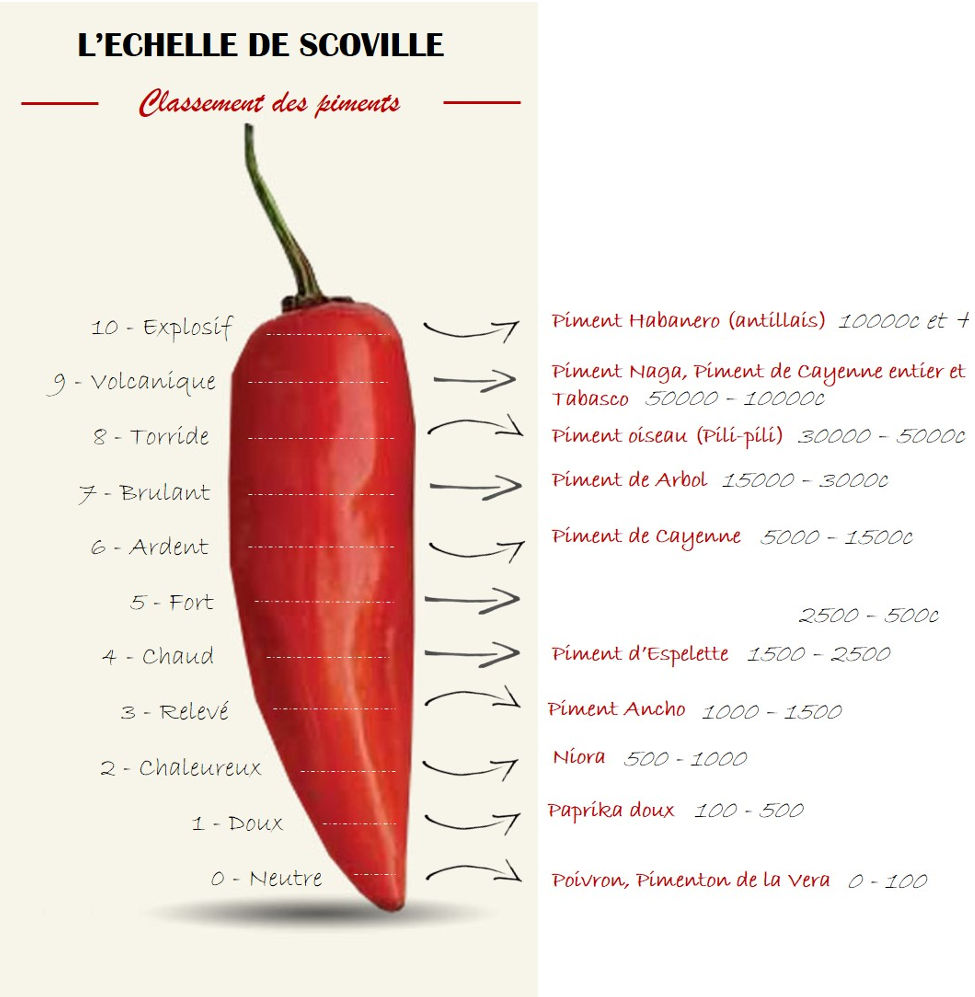 L'échelle de Scoville mesure la puissance des piments en fonction de leur concentration en capsaïcine, la molécule responsable de leur piquant. Voici quelques points clés :